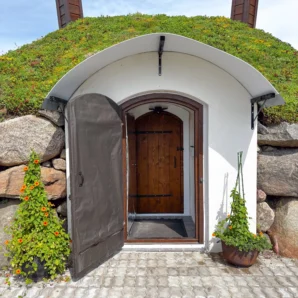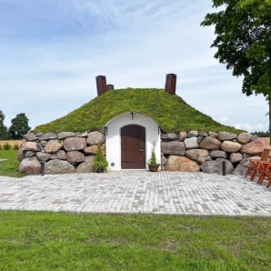 I Orissaare, hvor naturen setter tempoet for alt, gir denne betongkjelleren en perfekt balanse av styrke og stillhet. Den solide betongkonstruksjonen og det grønne taket samarbeider om å holde et naturlig kjølig og jevnt klima gjennom alle årstider – ren funksjon formet av naturen.
